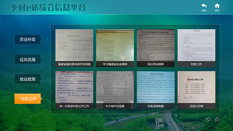 鄉(xiāng)村紅色教育、政務服務、村務信息公開、農村數(shù)字金融、鄉(xiāng)村特色、鄉(xiāng)村面對面等6項模塊。
